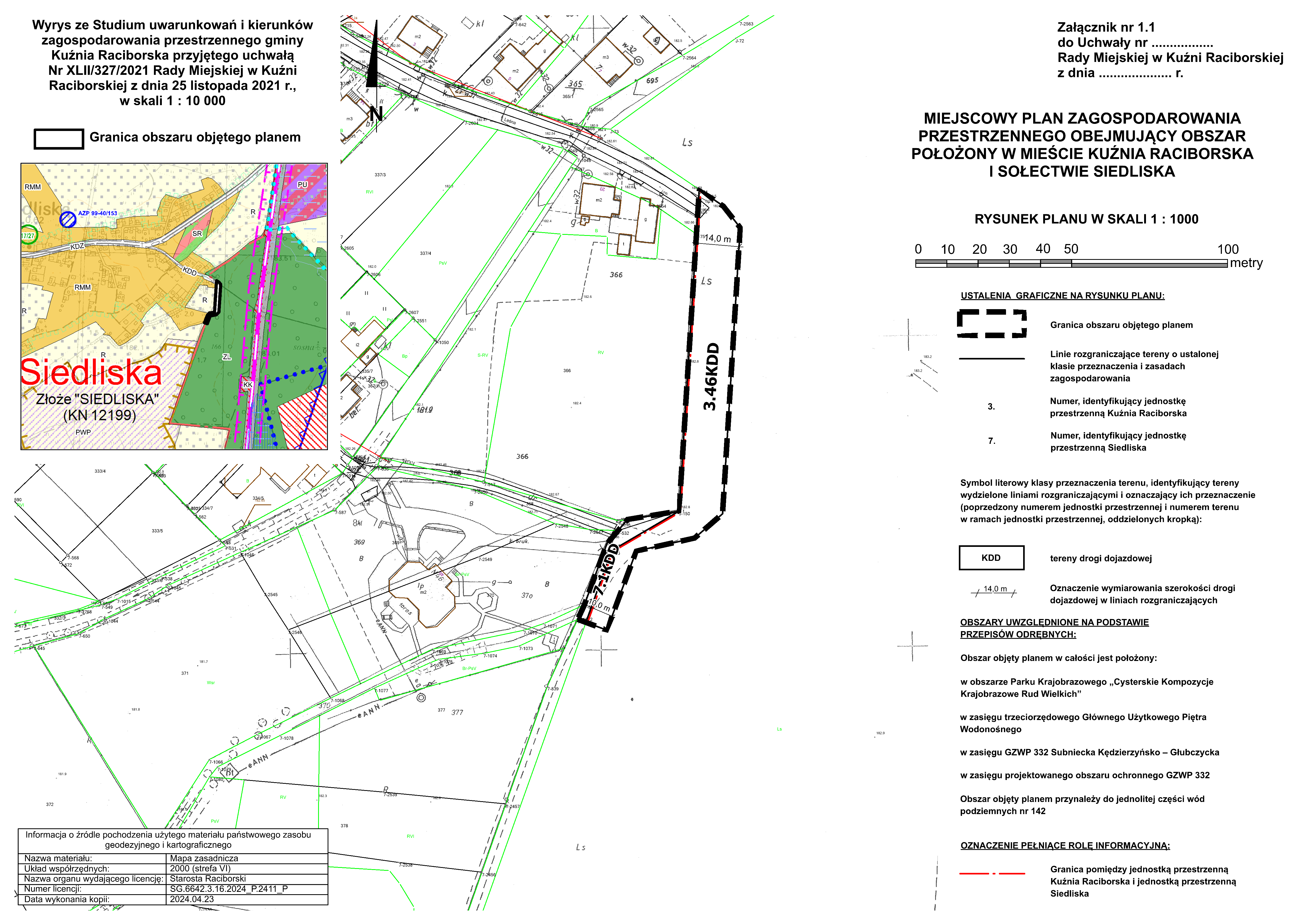 Projekt miejscowego planu zagospodarowania przestrzennego obejmującego obszar położony w mieście Kuźnia Raciborska i sołectwie Siedliska (uchwała o przystąpieniu nr LXXII/555/2024 Rady Miejskiej w Kuźni Raciborskiej z dnia 1 lutego 2024 r.) – etap opiniowania i uzgadniania.