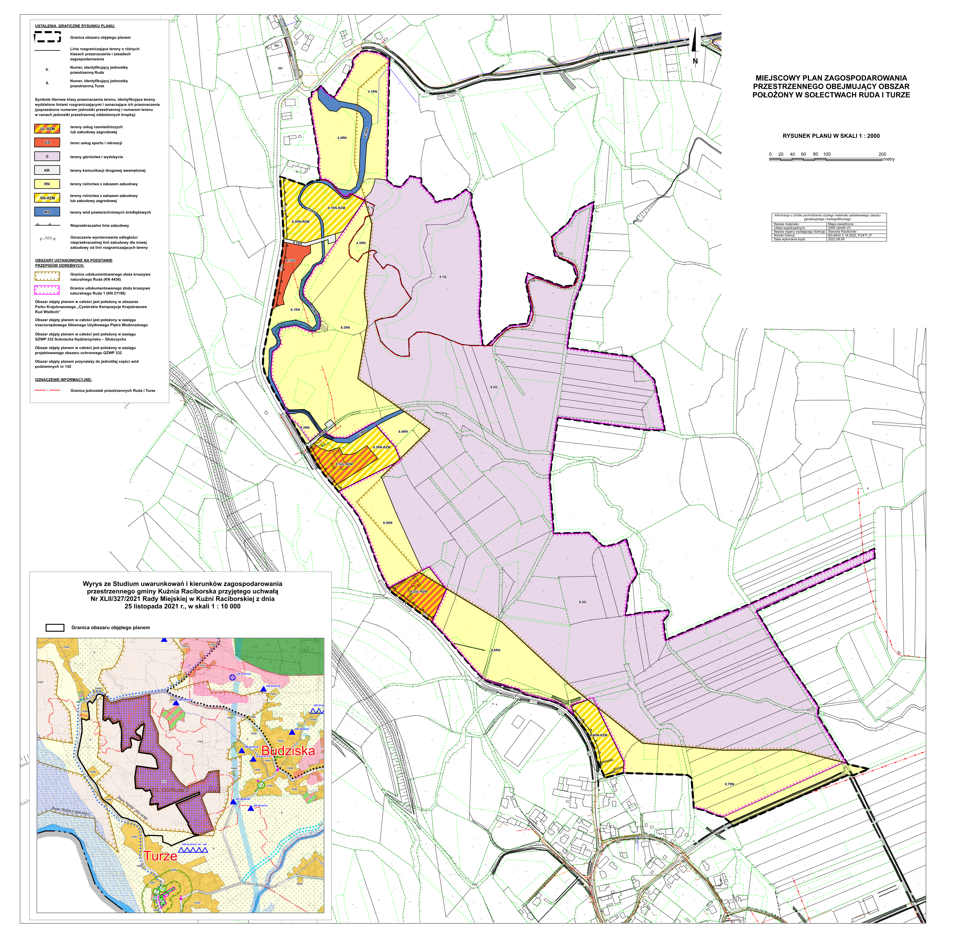 Projekt miejscowego planu zagospodarowania przestrzennego obejmującego obszar położony w sołectwach Ruda i Turze (uchwała o przystąpieniu nr L/398/2022 Rady Miejskiej w Kuźni Raciborskiej z dnia 23 czerwca 2022 r.,) – etap opiniowania i uzgadniania.